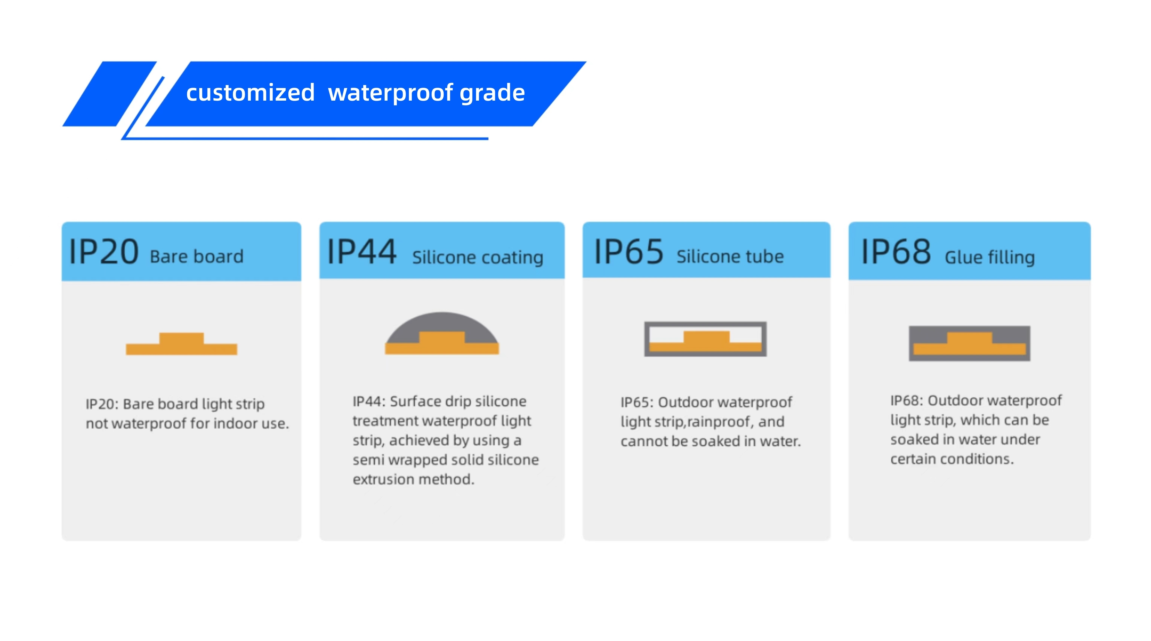 IP65, and IP68 ratings suit various outdoor uses. Zendpro's waterproof strips pass multiple encapsulation tests for reliable, weather-resistant performance.
