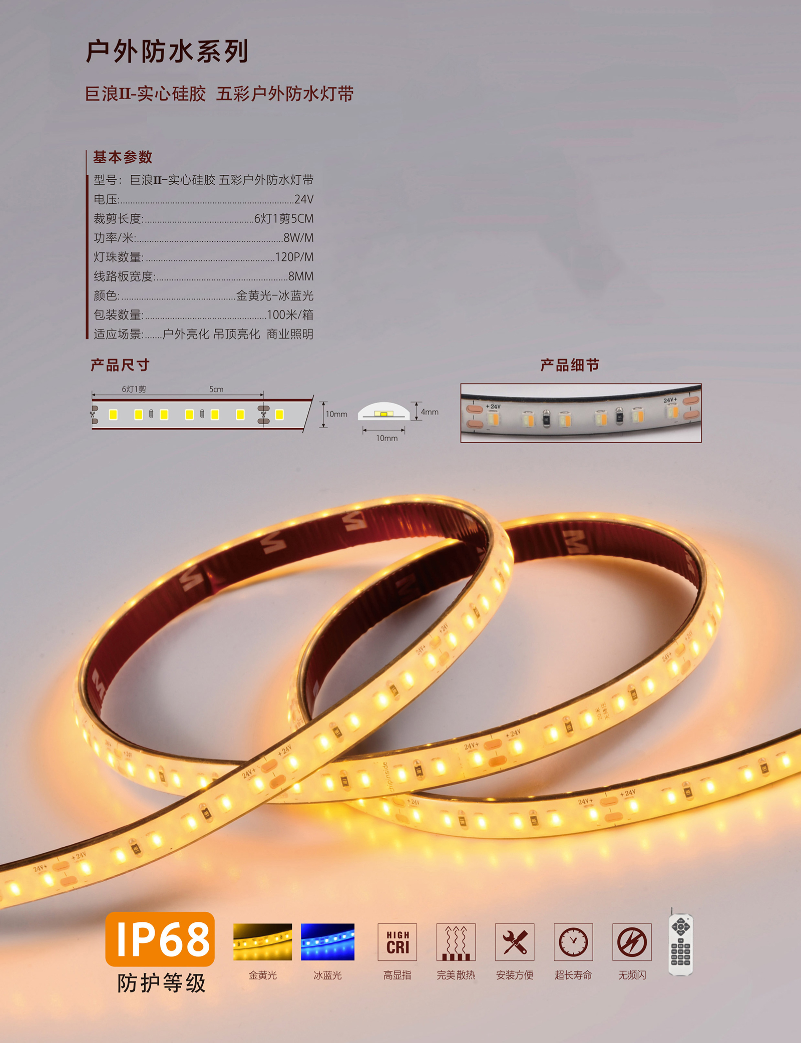 巨浪II-实心硅胶 五彩户外防水灯带