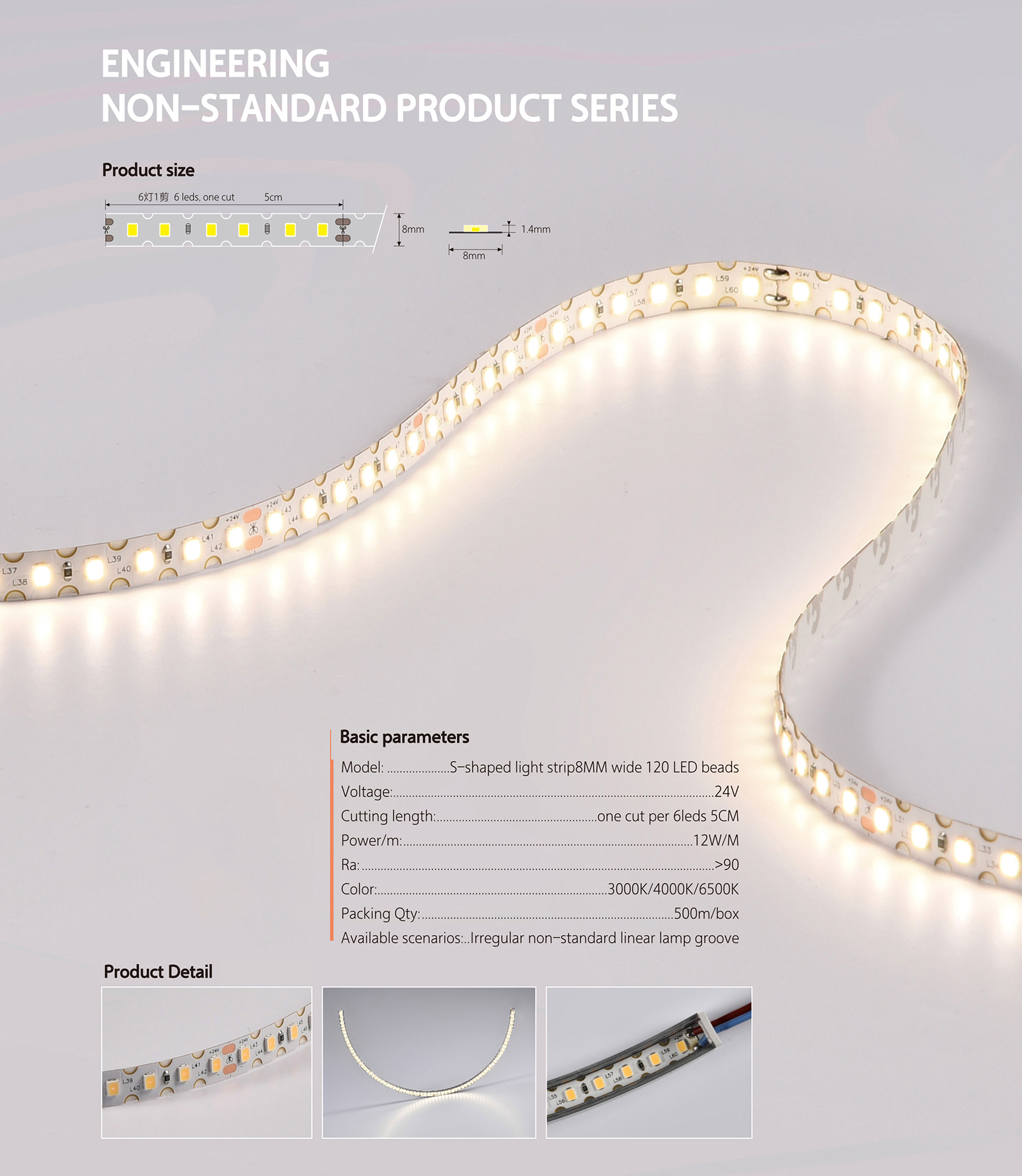 | Package | 10m/Roll | LED Qty | 120LEDs/M |