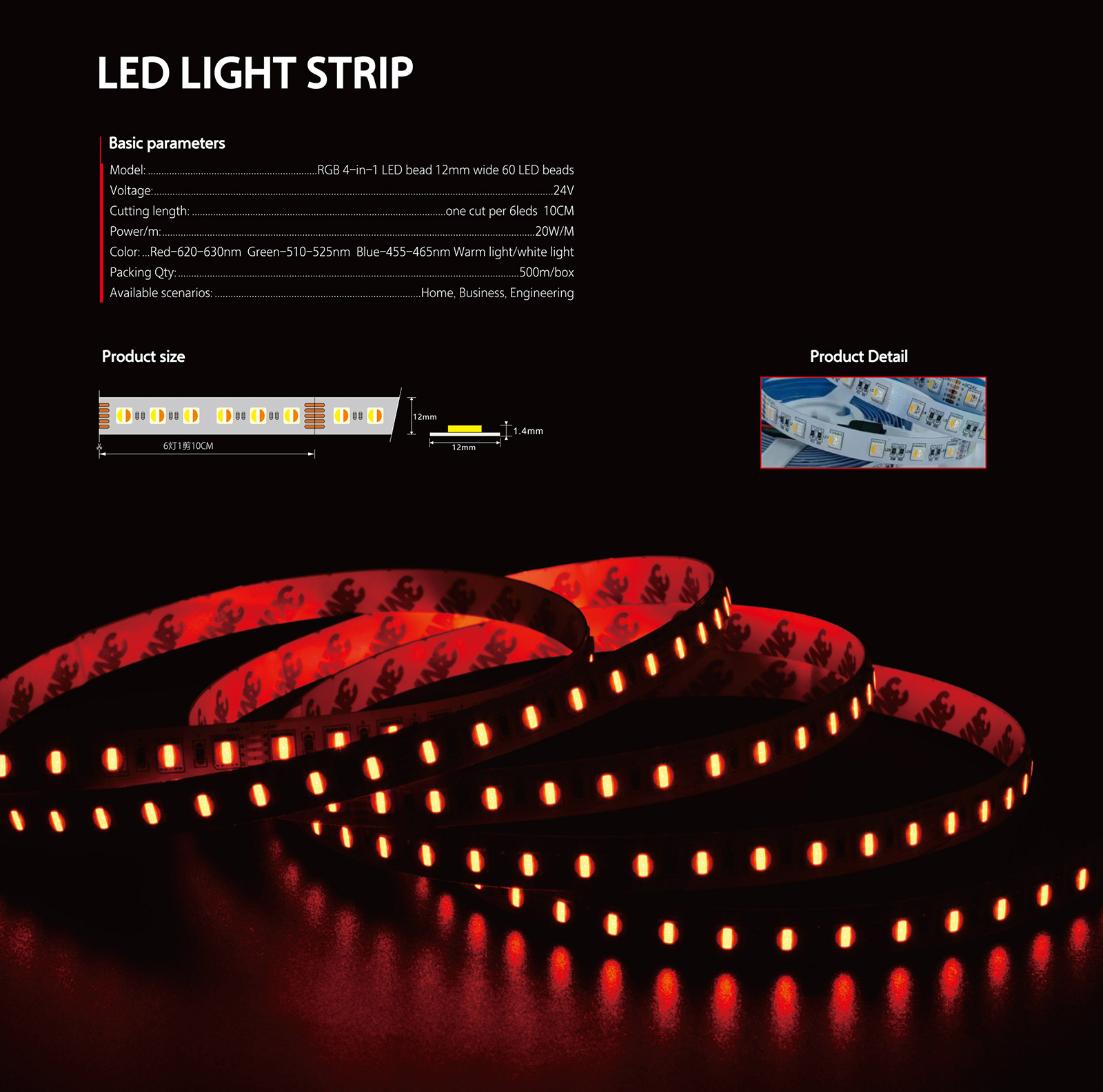 | Model | RGB 4-in-1 LED Bead 12 mm Wide 60 LED Beads | Cutting Length | One Cut Per 6LEDs 10cm |