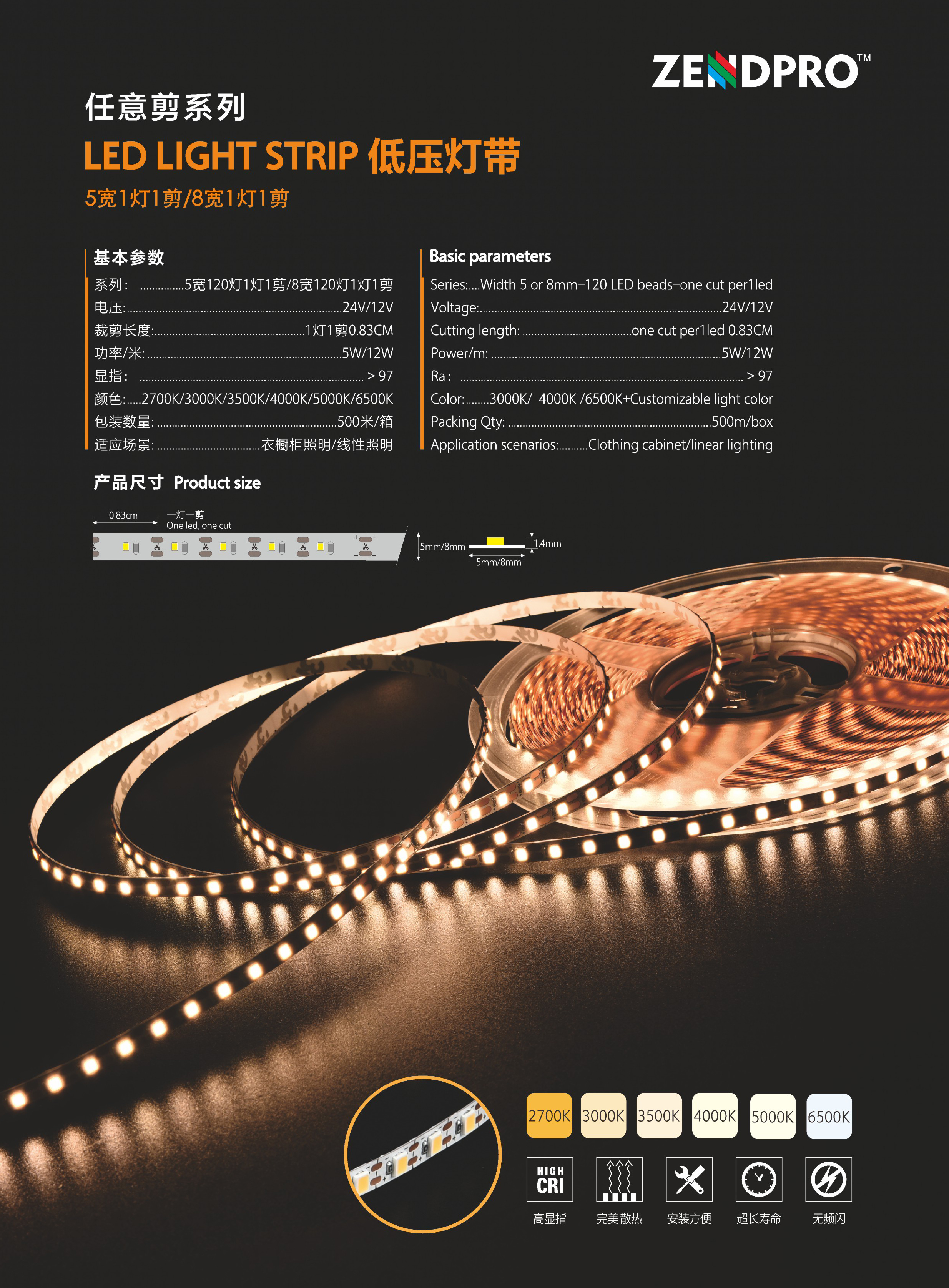 | CRI(Ra>) | >90 | LED Qty | 120LEDs/M |