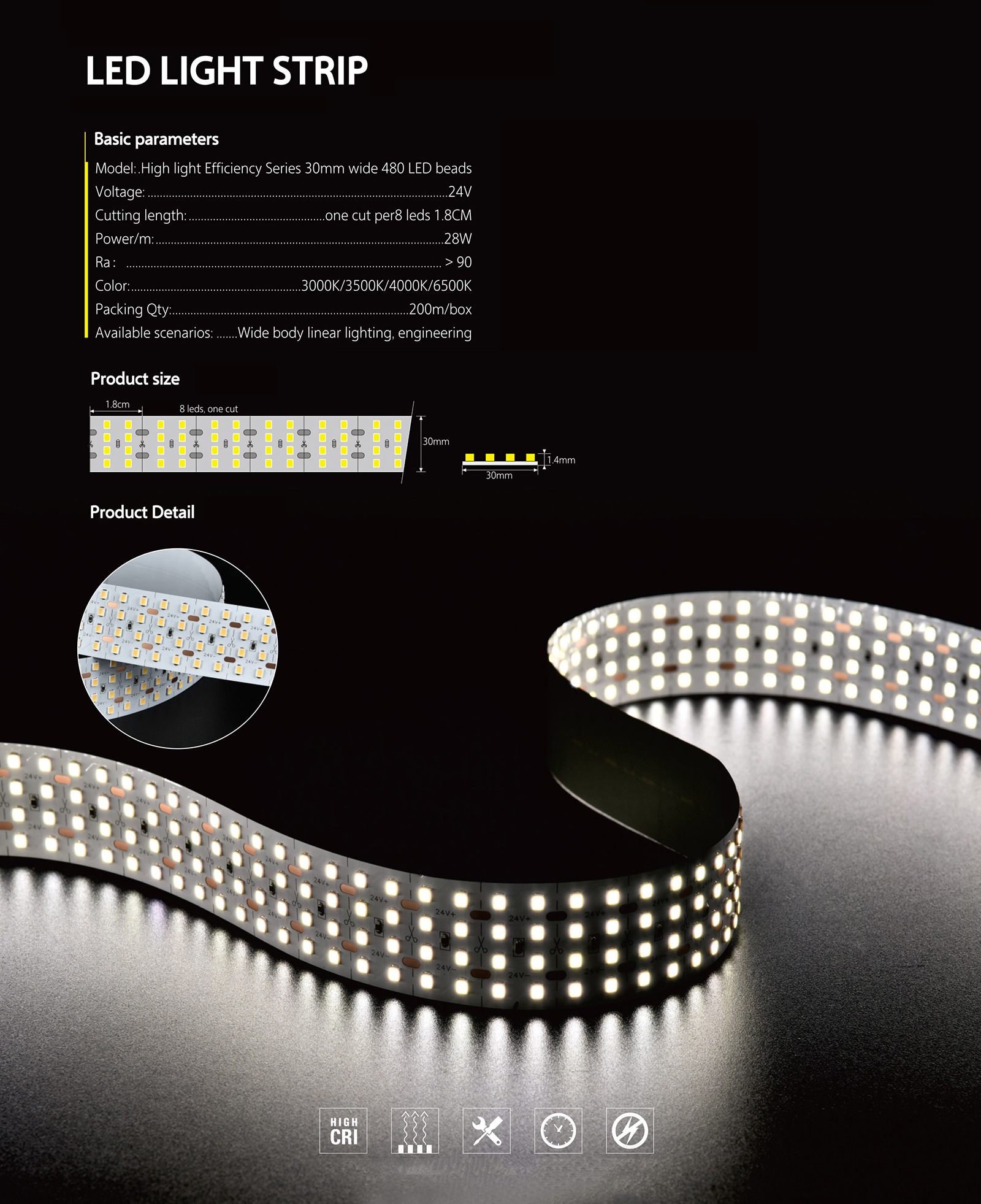 | Series | Width of 30mm and 480 LED BeaD | Cutting Length | One Cut Per1LED 0.83cm |