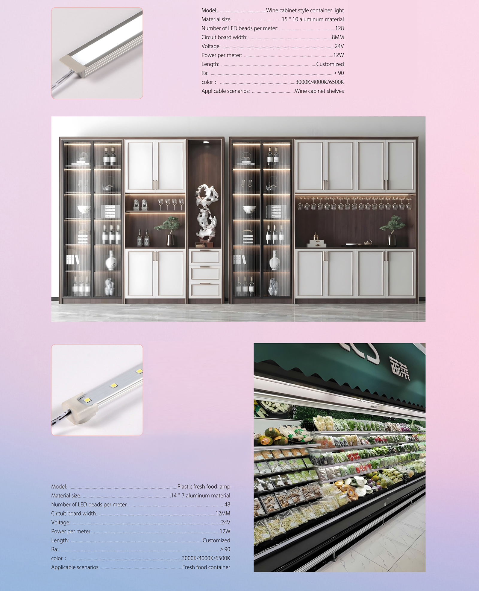 3. Enhance supermarket displays and merchandise showcases with dynamic and attractive lighting applications.