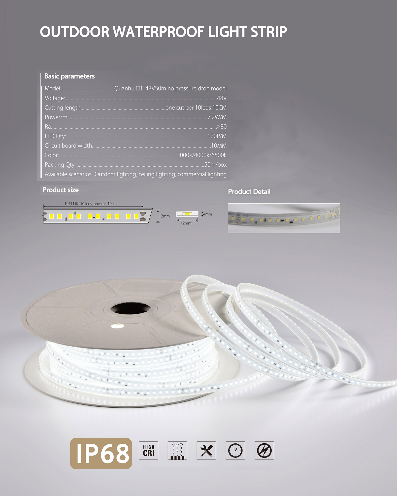 | Model NO. | Quanhui 3 48V50M no voltage drop | Emitting Color | Warm White/Nature White/White |