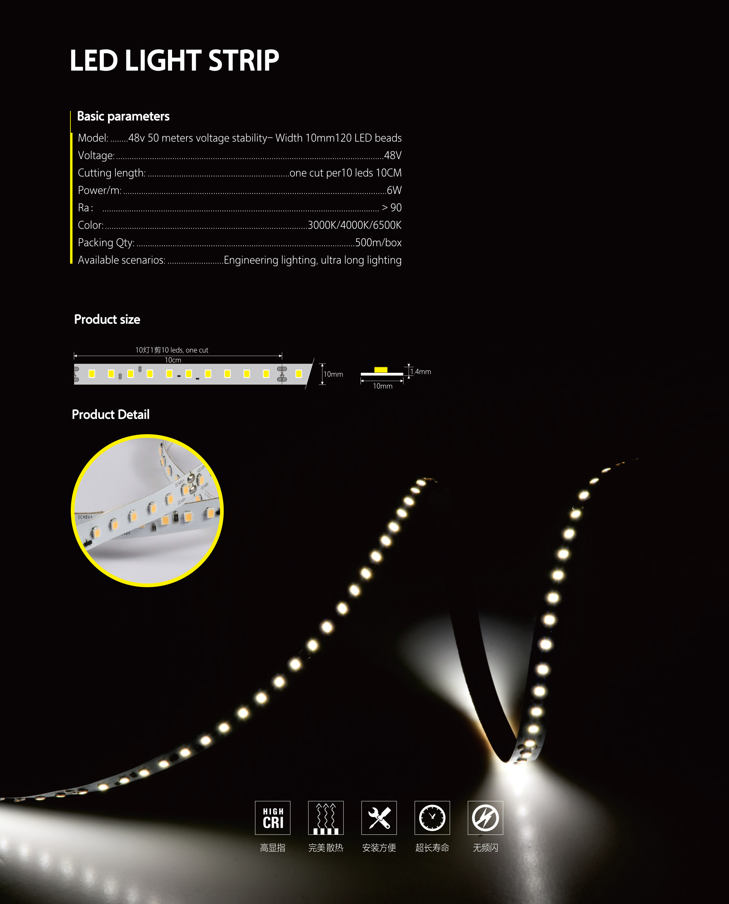 | Color | 3000K/3500K/4000K/6500K | Packing Qty | 500m/Box |